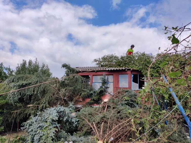 „V inkriminovaný čtvrtek jsem byl pracovně v Přerově, a když jsem viděl, co se na Hodonínsku děje, bylo mi jasné, že tam na druhý den hned pojedu. Bydlím dvacet kilometrů odtud, v Krumvíři, a chtěl jsem těm lidem pomoct,“ říká muž, který má firmu na rizikové kácení a práci se stromy ve výškách, což je přesně to, co bylo na místě hodně potřeba.
