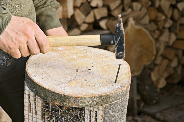 Nezapomeňte hlavní část hotelu zakrýt hustějším pletivem. Jinak byste místo hmyzího domečku vytvořili ptačí krmítko.