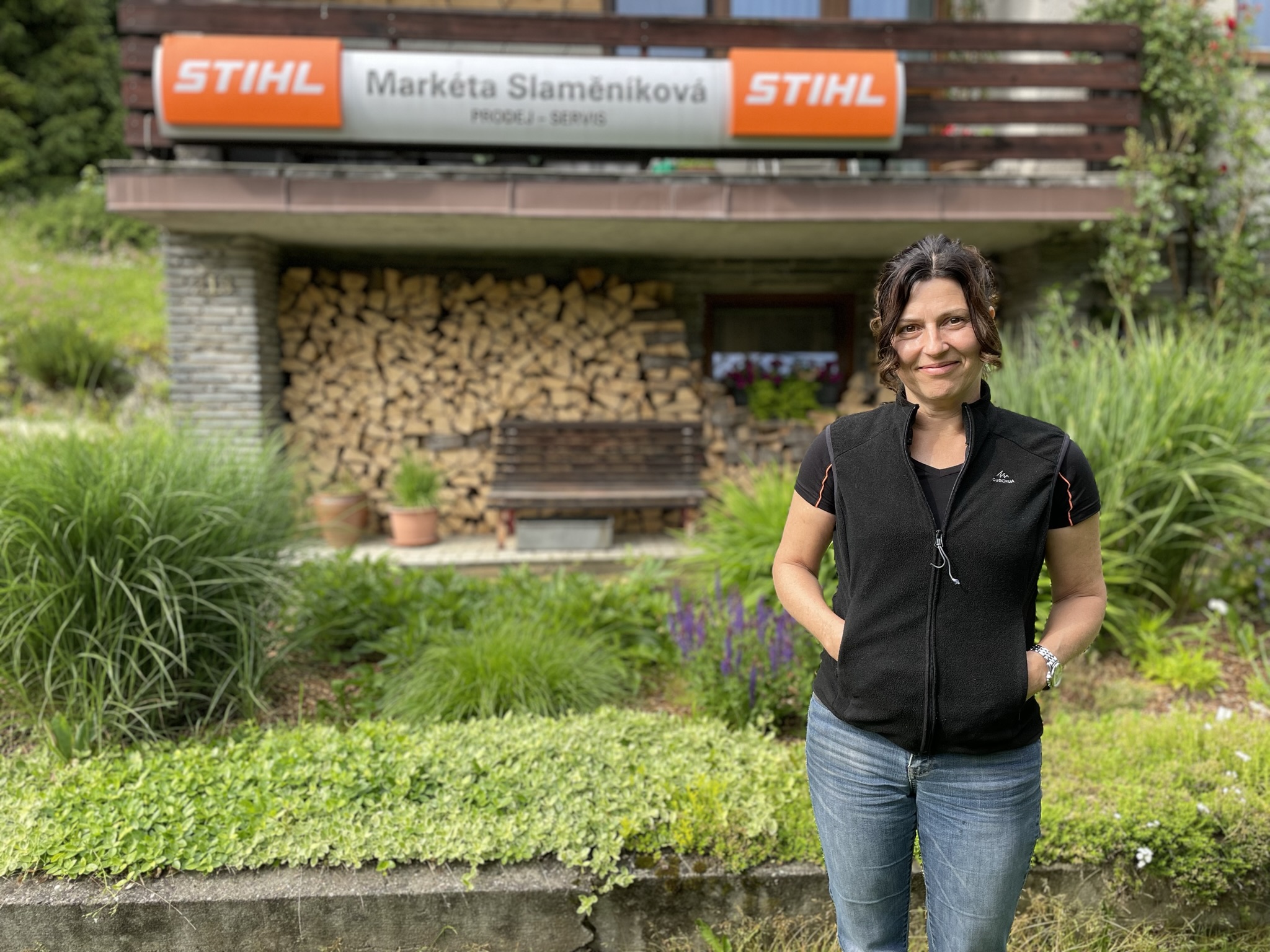 Za hustého deště přijíždíme k prodejně STIHL v Malé Morávce v Jeseníkách. Ve dveřích nás vítá její majitelka, energická a vždy usměvavá Markéta Slaměníková. V domě po rodičích, který jako dítě pomáhala stavět, před lety začal její tatínek s prodejem lesní a zahradní techniky STIHL a ona od něj rodinný podnik postupně převzala.