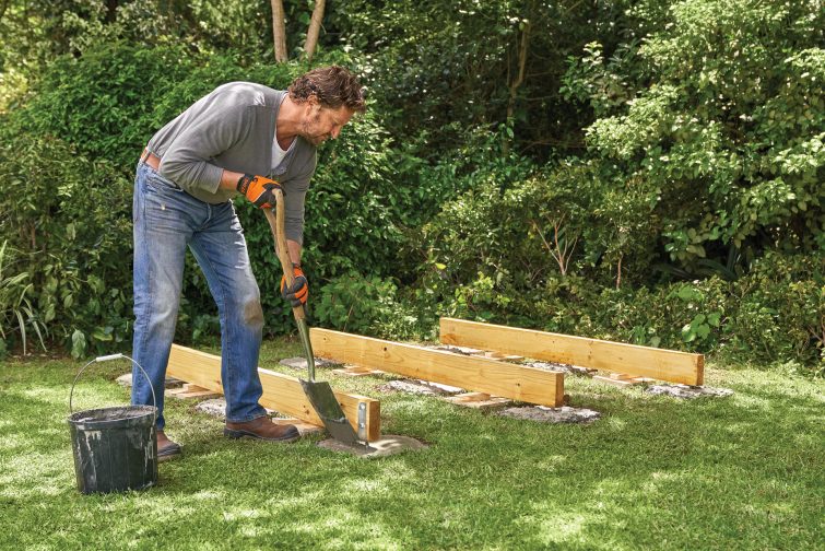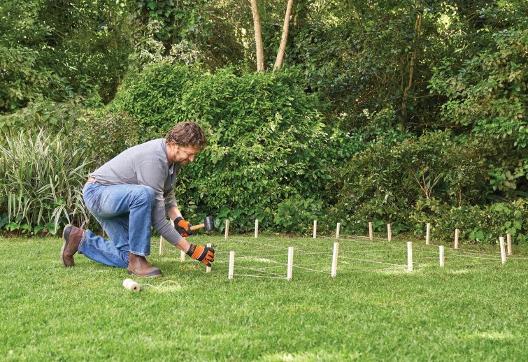 Stejně jako u všech větších stavebních projektů v zahradě je i v případě zahradního domku prvním důležitým krokem najít pro něj vhodné umístění. Jakmile najdete správné místo, označte si pracovní plochu kolíky a lankem.
