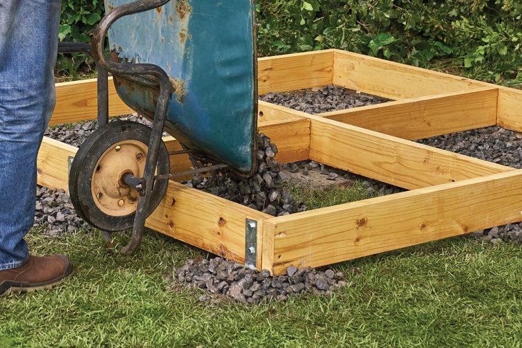 Mezery mezi spodní konstrukcí vyplňte štěrkem nebo kamennou drtí. Betonové plochy můžete pro dosažení atraktivnějšího vzhledu dodatečně zakrýt.