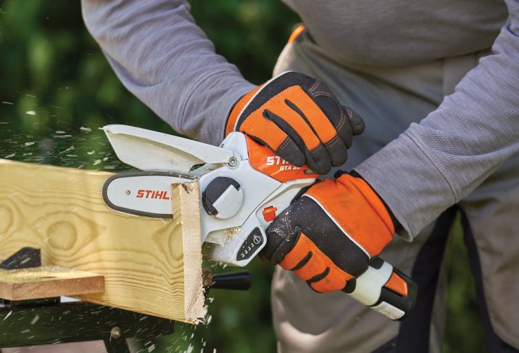 Pro řezání silnějšího dřeva se doporučuje kompaktní a praktická akumulátorová řetězová pila, například řetězová pila STIHL MSA 140. Pro preciznější práci využijete minipilu GTA 26.