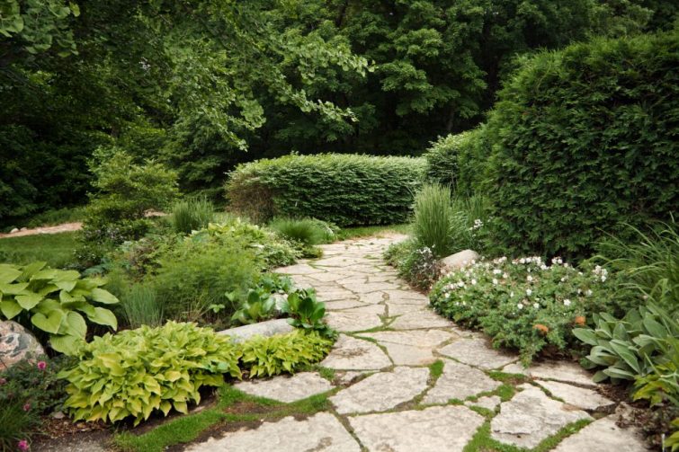 Pro vytvoření cesty používejte nejlépe přírodní materiály, jako je dřevo nebo kámen. U kamenné terasy nesahejte po víc jak dvou různých kamenných materiálech.
