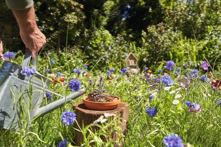 Na žádné květinové louce by neměly chybět jasně modré chrpy. Pokud se zaseje brzy, louka už v létě rozkvete a poslouží jako zdroj potravy pro hmyz. Chcete-li hmyzu a divokým včelám udělat ještě větší radost, umístěte na zahradu také napajedlo a hmyzí hotel. Jako napajedlo vám poslouží mělká miska s vodou zatěžkaná šiškami a kameny, na které si hmyz sedne a napije se. Hmyzí hotel pořídíte v zahradnických potřebách anebo si jej můžete sami vyrobit podle našeho návodu.