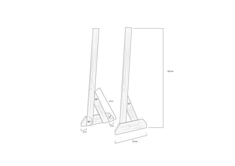 – 2 x 70 cm pro dvě vodorovné podpěry, oba konce zkosené pod úhlem 45°.