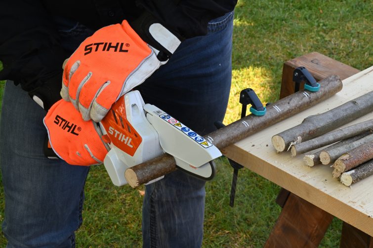 Nejprve si nařežeme větve na stejně dlouhé kusy, v našem případě 7 cm. Doporučujeme si jejich délku před řezáním naměřit a vyznačit fixem. Řezné hrany se obvykle trochu třepí, a proto je třeba je zahladit pomocí nože a brusného papíru.