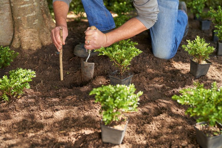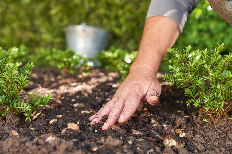 Rozmístěte mezi rostliny mulčovací kůru a hnojivo.