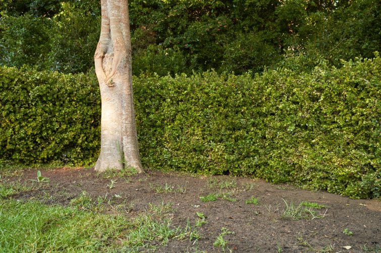 Pomocí dřevěných hrábí rozmístěte humus po celé ploše, kolem kmene stromu však ponechte asi 20 cm široký nezakrytý pás a ujistěte se, že značkovací klacíky zůstanou na svých místech. Nepřidávejte ornici, protože stromy s rovnými kořeny, ale ani buky ji nemají rády.