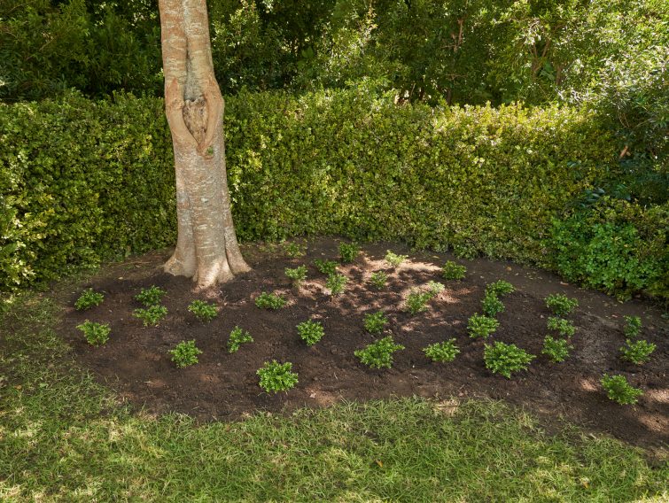 Jakmile během přípravy půdy najdete místa, kde se nenacházejí kořeny stromů, označte si je pomocí klacíků. Tato místa jsou totiž ideální pro výsadbu půdopokryvných rostlin, protože novým rostlinám nabízejí dostatečný prostor pro kořeny. Pomocí železných hrábí odstraňte všechny zbytky kořenů a rostlin a vysbírejte kameny. To je velmi důležité, pokud chcete použít kultivátor.